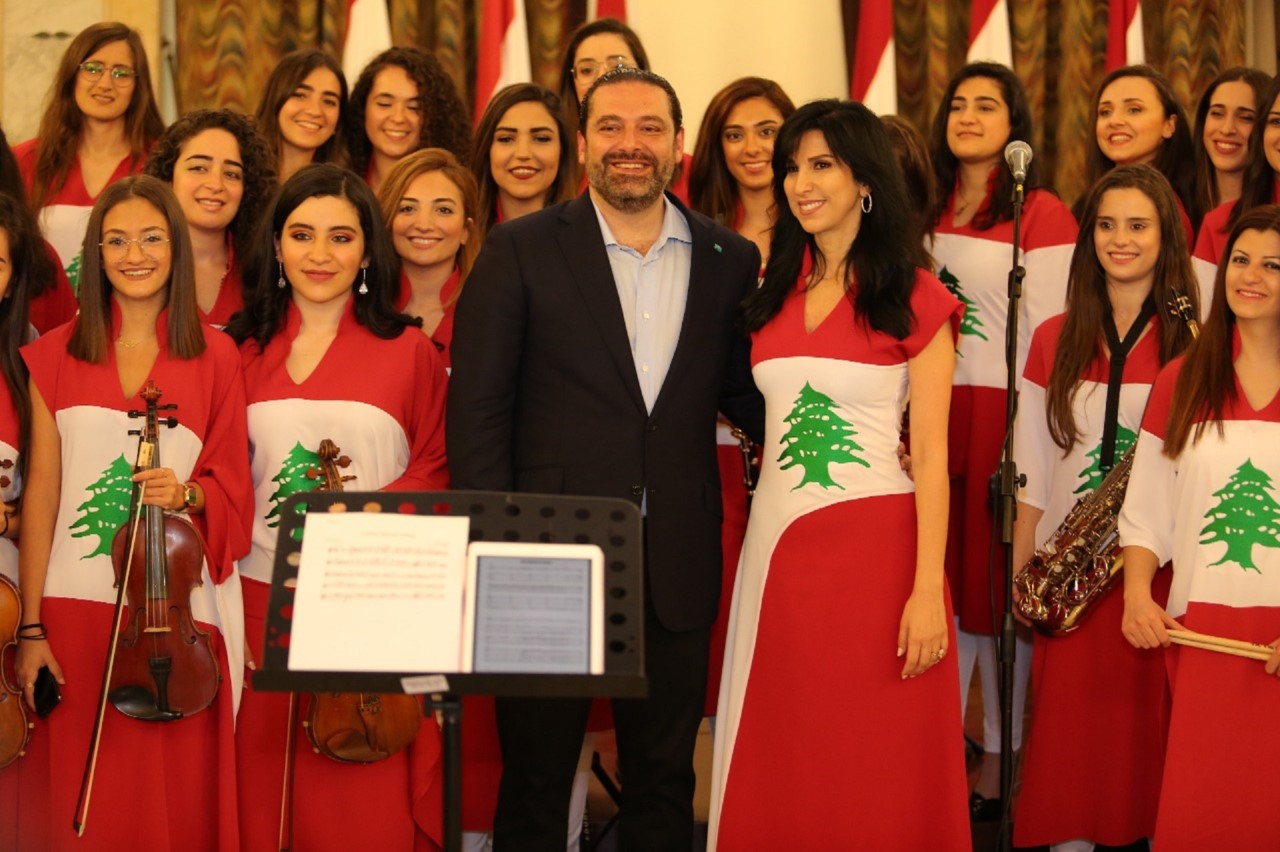 بدأ الإحتفال بالنشيد الوطني اللبناني الذي عزفته فرقة “هنّ” النسائية لتليه الكلمات.