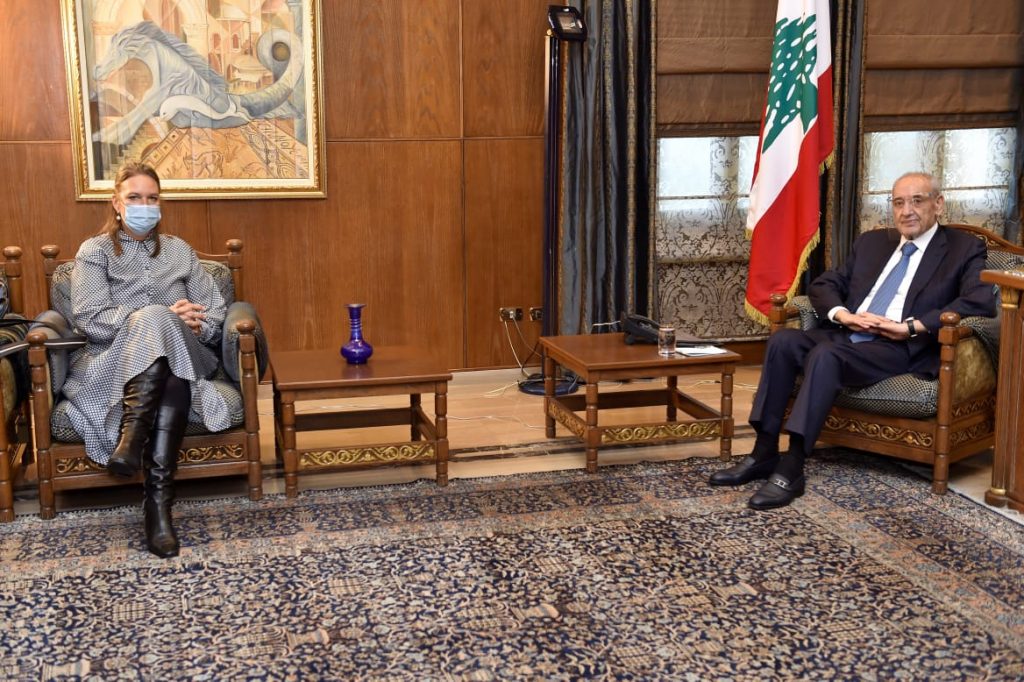 إستقبل رئيس مجلس النواب الاستاذ نبيه بري في مقر الرئاسة الثانية في عين التينة سفيرة سويسرا في لبنان ماريون كروبسكي حيث جرى البحث في الأوضاع العامة والعلاقات الثنائية بين البلدين .