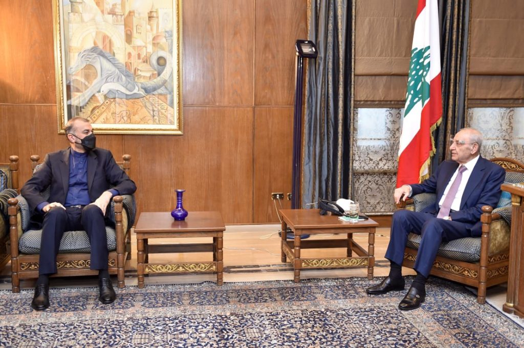 استقبل رئيس مجلس النواب نبيه بري بعد ظهر اليوم في مقر الرئاسة الثانية في عين التينة وزير خارجية الجمهورية الاسلامية الايرانية حسين أمير عبد اللهيان والوفد المرافق بحضور السفير الايراني لدى لبنان محمد جلال فيروزنيا اللقاء الذي استغرق زهاء ساعة غادر بعده الوزير عبد اللهيان دون الادلاء بتصريح