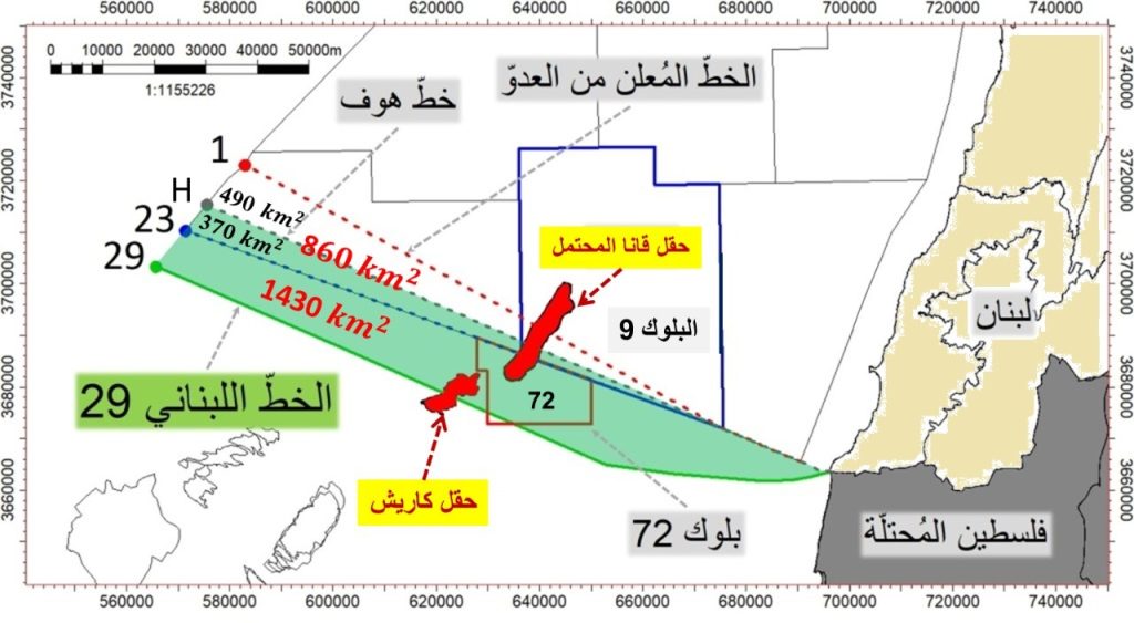 والوعي ثانيًا: أن الخطوط من خط “هوف” و(23) و(29) أوغيرها هي ليست مجرد خطوط اعتباطية تطرح بطريقة عبثية، بل تشكل إعتماد إحداها قاعدة لتثبيت حقوق الشعب اللبناني في استغلال موارده وثرواته الطبيعية والاقتصادية،وتغليب أحد هذه الخطوط على الآخر إنما يرتكز إلى دراسات وبراهين قانونية وتقنية وسوابق قضائية دولية في تسوية المنازعات البحرية. لذا فإن تمسك الوفد اللبناني المفاوض بالخط (29) في مفاوضاته الغيرمباشرة لترسيم الحدود البحرية اللبنانية إنما يرتكز إلى معطيات قانونية وتقنية تشكل القاعدة الأقوى لمطالبة لبنان بحقوقه البحرية. فما هي هذه المعطيات؟ بداية لا بد من التنويه أن موقف الوفد اللبناني المفاوض للمطالبة بتثبيت حقوق لبنان في ثرواته البترولية انطلاقًا من الخط (29) الذي ينطلق من نقطة رأس الناقورة برًا والممتد بحرًا تبعًا لتقنية خط الوسط من دون احتساب أي تأثير للجزر الساحلية التابعة لفلسطين المحتلة أي جزيرة “تخليت”، هو موقف ثابت منذ عودة جولة المفاوضات غيرالمباشرة في الناقورة بتاريخ 14/10/2020، وكان يرتكز منذ البداية إلى دعم سياسي من الدولة، فالمفاوضات الأخيرة لم تنطلق إلا بناء على تكليف وتوجيهات من رئاسة الجمهورية المدونة في بيانها الصادر بتاريخ 13/10/2020 والتي أكدت فيه على ضرورة التمسك ببدء المفاوضات من الخط (29) ورفض حصر التفاوض بين الخط (1) والخط (23) كما يطالب الجانب الإسرائيلي. هذا الموقف الرسمي الذي عززته الدولة اللبنانية تاليًا في الكتاب المرسل إلى الأمم المتحدة بتاريخ 28/01/2022، حيث اعتبرت أن حقل “كاريش” – الواقع بين الخط (23) والخط (29)- حقلًا متنازع عليه فيما بين الطرفين مع المطالبة بمنع أي اعمال تنقيب في هذه المنطقة المتنازع عليها لما قد تشكله من اعتداء على حقوق وسيادة لبنان.