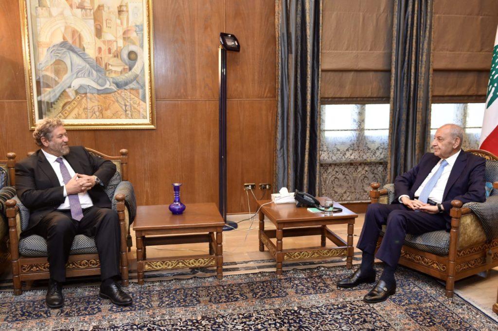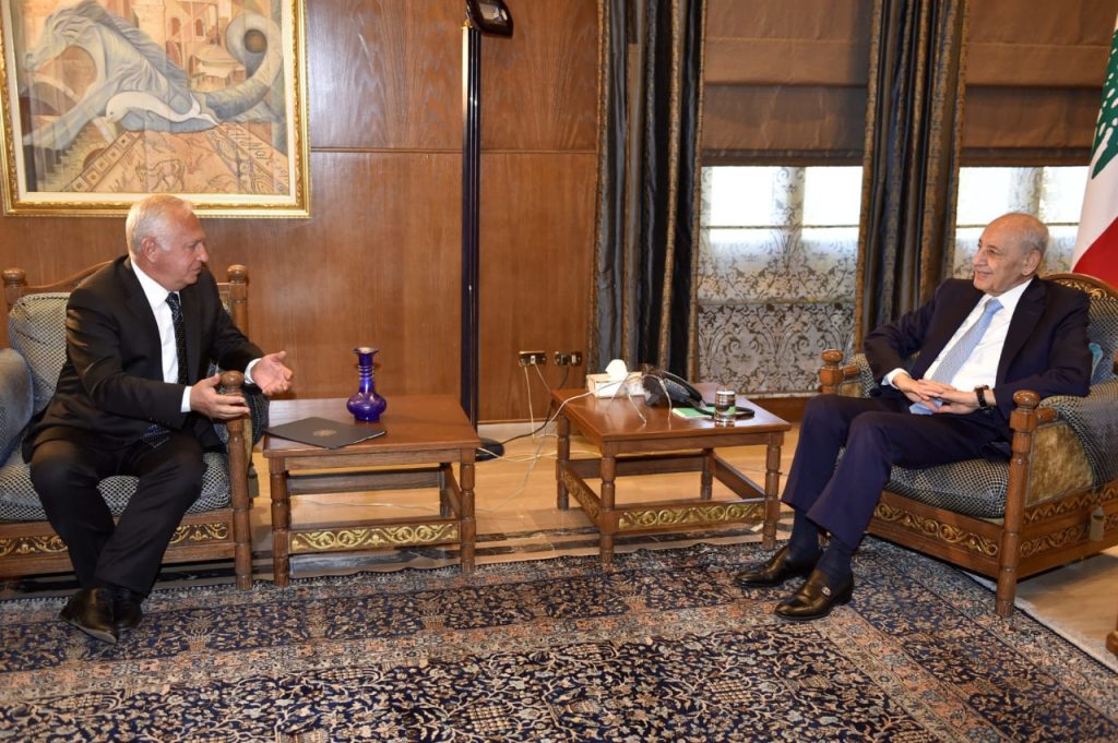 استقبل رئيس مجلس النواب الاستاذ نبيه بري في مقر الرئاسة الثانية في عين التينة سفير أرمينيا في لبنان فاهاكن اتابيكيان الذي سلمه رسالة تهنئة من نظيره الأرميني آلان سيمونيان بمناسبة إنتخابه رئيساً للمجلس النيابي اللبناني لولاية جديدة كما سلمه دعوة لزيارة أرمينيا .