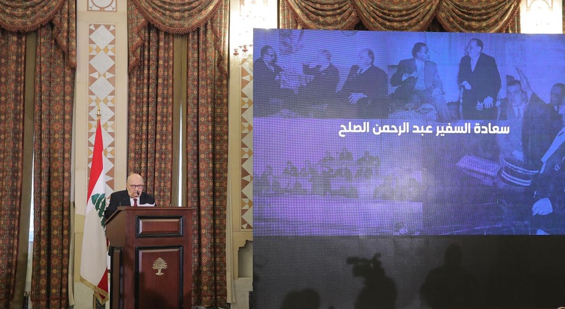 ورأى ان تكريم الصلح هو “استذكار لوجه لبنان الحضاري الذي ساهم الراحل ببناء مؤسساته وبالأخص المؤسسات الاصلاحية والاقتصادية والمصرفية والقضائية الى تشريعات الضمان الاجتماعي ومشاريع الري”.