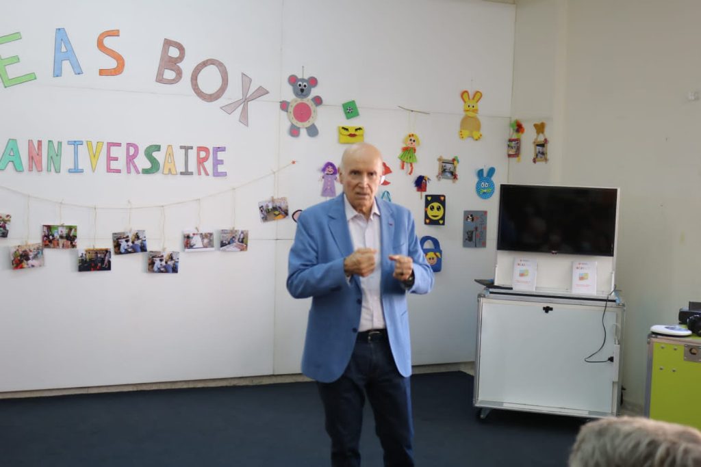 صندوق الأفكار” هو عبارة عن مكتبة وسائط متنقلة، صمّمها المصمّم فيليب ستارك لمنظمة مكتبات بلا حدود، يمكن تشغيلها خلال دقائق لإنشاء مساحة ثقافية وتعليمية تبلغ مساحتها 100 متر مربع. هذه المكتبة المزوّدة بأجهزة كمبيوتر، أجهزة إلكترونية، ألعاب، كتب ومسرح سينما، تتيح للصغار والكبار التعلّم وإنشاء الروابط وبناء مستقبلهم رغم الصعوبات في حالات الأزمات والصراعات، حيث وضعت حيز التنفيذ في العام 2021 في ثلاثة مراكز إنسانية تديرها “عامل” بهدف تعزيز جودة وتأثير الأنشطة التعليمية التي تنفذها المؤسسة في كامد اللوز في البقاع الغربي، الخيام في جنوب لبنان، وحارة حريك في ضاحية بيروت.