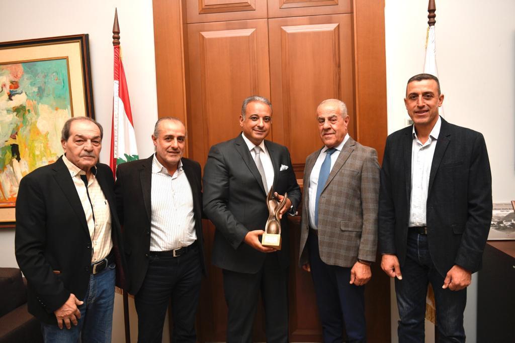 وقد قدم له الأخوان عسّاف منحوتةً عربون شكر وتقدير .