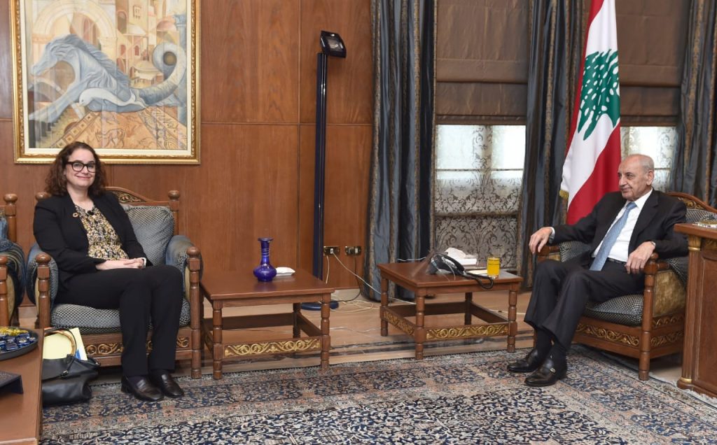 استقبل رئيس مجلس النواب الاستاذ نبيه بري في مقر الرئاسة الثانية في عين التينة الممثل المقيم لبرنامج الامم المتحدة الانمائي في لبنان ميلاني هاونشتاين .