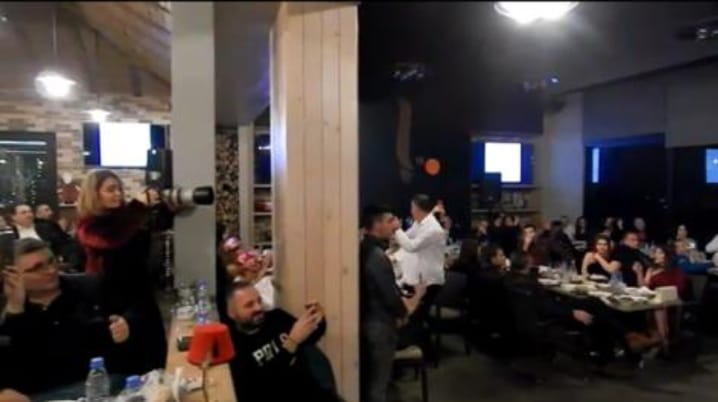 وبين رنين الكاس ورنة الألحان، تم النعيم للروح والعين والقلب، نغم في الجوّ له رنّة، فتناهت الى مسامع مسؤول السوشيال ميديا للفنان هاني العمري وعدد من الفنانين فارس الحداد همهمات شوق لحبيبته سارة شدياق بالمناسبة، ليعانق قلبه قلبها ويعلن خطوبته جاثياً على ركبته وسط الحضور، حاملاً بيده خاتم الخطوبة ليضعه بيدها اليمنى تأكيداُ لإرتباطهما الأبدي. وهنا سارة، أكدت لنا أيضاً، قول شكسبير: المرأة كالغيتار لا تعطي ألحانها إلّا لمن يتقن العزف على أوتار قلبها.