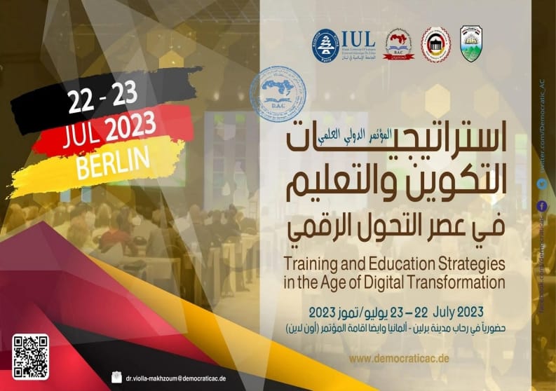 عقد في العاصمة الألمانية برلين نهار السبت بتاريخ 22/07/2023 مؤتمر تربوي دولي بعنوان إستراتيجيات التكوين والتعليم في عصر التحول الرقمي حيث شهد المؤتمر حضور عدد كبير من الخبراء والمهتمين بمجال التعليم والتكوين، وقد نظم بالتعاون بين المركز الديمقراطي العربي في لبنان والجامعة الإسلامية في لبنان وجامعة إب في اليمن، بالإضافة إلى Demokratisches Deutsches Zentrum für MENA-Studien في برلين، ألمانيا.