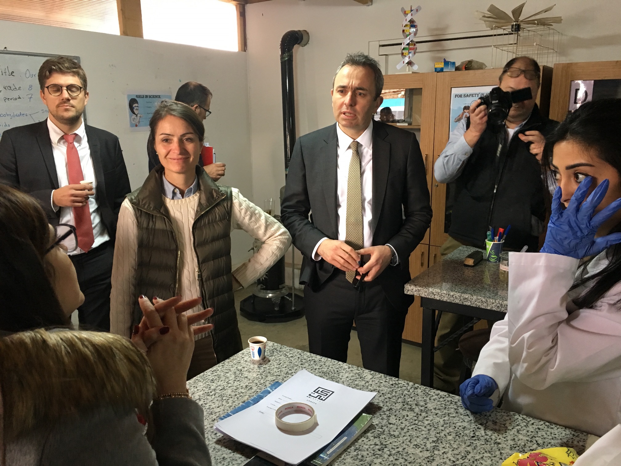 وانضم إلى السفيرة لاسن لاحقاً السفير البريطاني كريس رامبلنغ في مدرسة البنات التابعة لمؤسسة كياني في بر الياس. وقد عاينا كيف أنّ إنشاء المختبرات العلمية، والتوجيه الأكاديمي والخاص بالمنح، إلى جانب أنشطة المساندة النفسية والاجتماعية تعود بالفائدة على الشباب من اللاجئين واللبنانيين، بفضل هبة من مشروع HOPES الممول من الاتحاد الأوروبي، ومن خلال برنامج Padileia الممول من وزارة التعاون الدولي في المملكة المتحدة. ويتولى مركز المشاركة المدنية والخدمة المجتمعية في الجامعة الأميركية في بيروت تنفيذ الأنشطة.