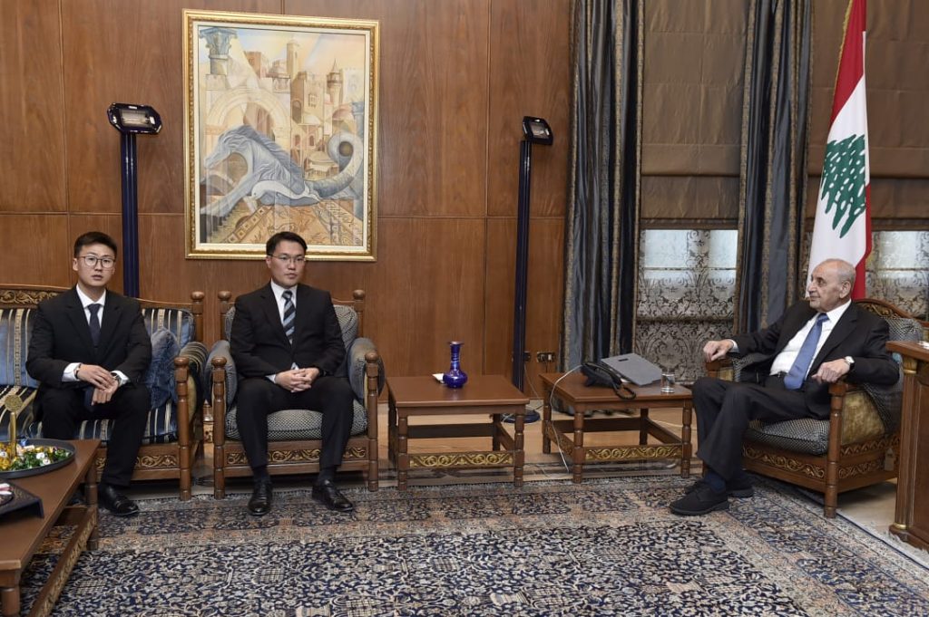 رئيس المجلس استقبل أيضا وفداً من أركان الكتيبة الكورية العاملة في إطار قوات اليونيفل في جنوب لبنان وضم الميجر سان والكابتن جون ، الوفد قدم للرئيس بري لمحة عن الأنشطة التي أنجزتها الكتيبة في شتى المجالات لاسيما إنسانياً وإجتماعياً وثقافياً منذ بدء مشاركتها في اليونيفل وحتى الان .