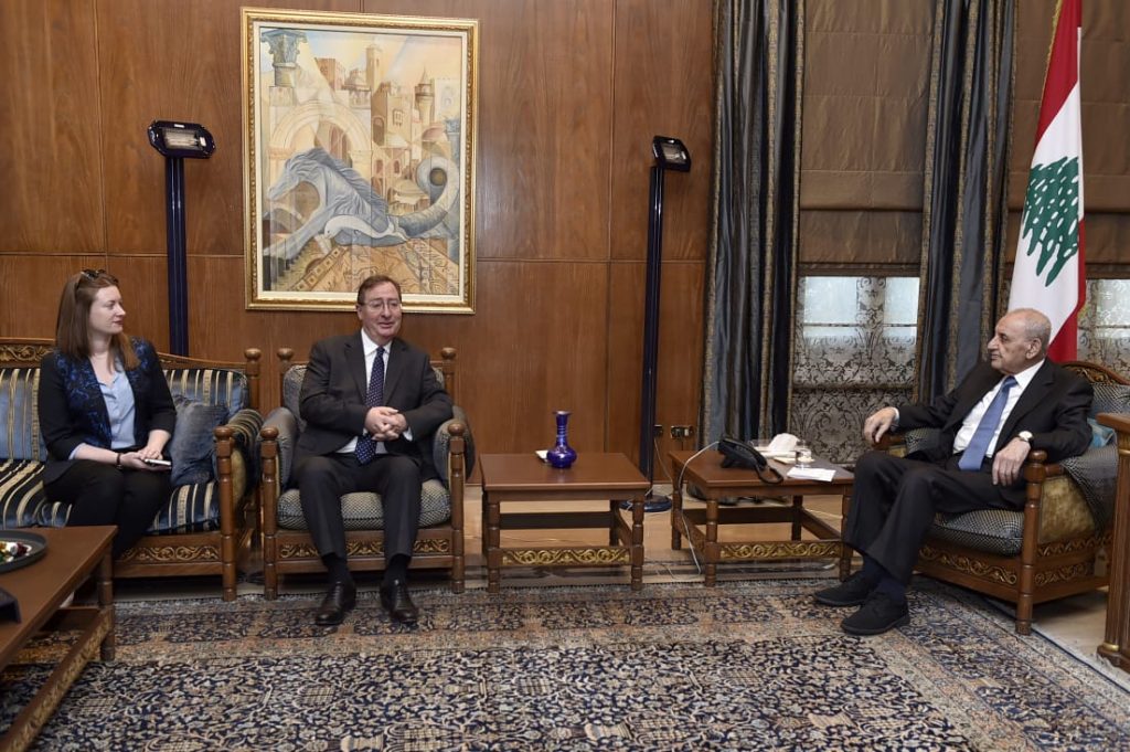 استقبل رئيس مجلس النواب الاستاذ نبيه بري في مقر الرئاسة الثانية في عين التينة سفير بريطانيا في لبنان هاميش كاول حيث جرى عرض للاوضاع العامة في لبنان والمستجدات السياسية والعلاقات الثنائية بين البلدين .
