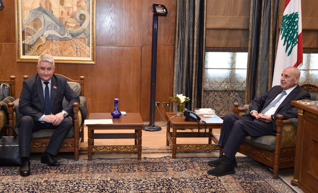 الرئيس بري إستقبل أيضاً رئيس مجلس الوزراء في جمهورية بيلاروسيا فيكتور كارانكفيتش يرافقه نائب رئيس مجلس النواب البيلاروسي فاديم إيباتوف مع وفد وزاري ونيابي بحضور سفير بيلاروسيا غير المقيم في لبنان يوري سلوكا والمستشار الإعلامي للرئيس بري علي حمدان .