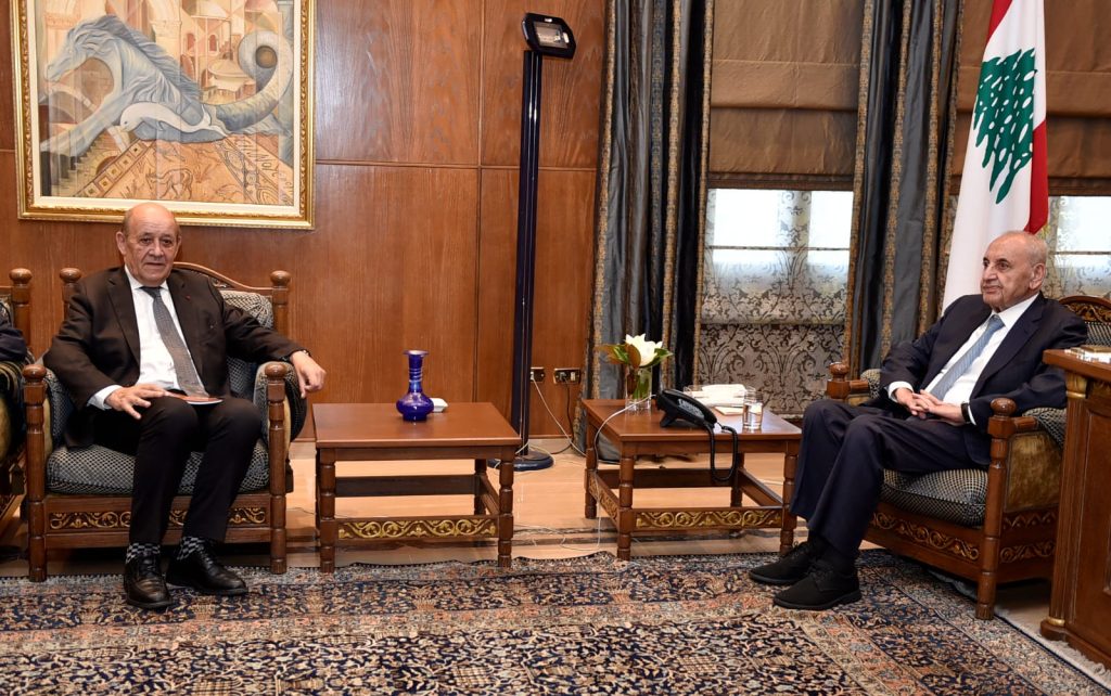 إستقبل رئيس مجلس النواب نبيه بري في مقر الرئاسة الثانية في عين التينة الموفد الرئاسي الفرنسي جان إيف لودريان والوفد المرافق بحضور السقير الفرنسي هيرفيه ماغرو ومستشار رئيس مجلس النواب الدكتور محمود بري .