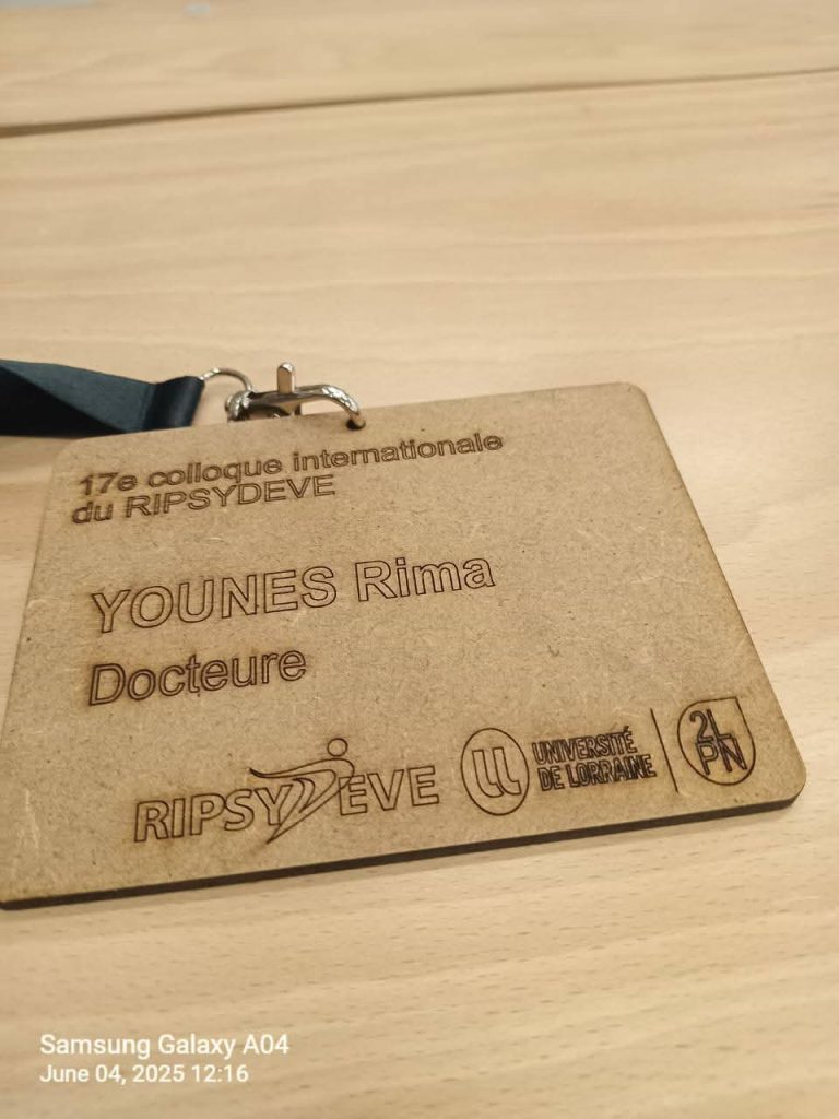 L’Association Libanaise pour le Renouvellement Éducatif et Culturel (ALREC) a annoncé dans un communiqué que sa présidente, la Dre Rima Younes, a participé en présentiel, en tant que chercheuse, à la 17ème édition du colloque international du Réseau Interuniversitaire de Psychologie du Développement et de l’Éducation (RIPSYDEVE), organisée par le Laboratoire Lorrain de Psychologie et Neurosciences de l’Université de Lorraine, sur le Campus Lettres et Sciences Humaines de Nancy, du 4 au 6 juin 2025.