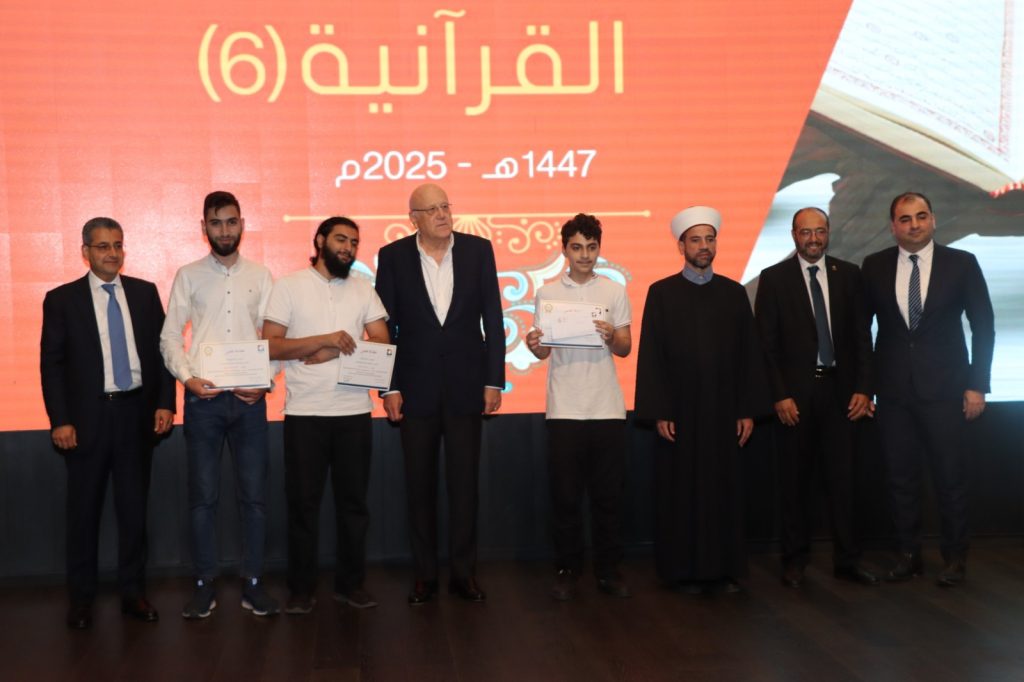 برعاية سماحة مفتي الجمهورية اللبنانية، أقامت جمعية الإرشاد والإصلاح بالشراكة مع مؤسسة شقير الخيرية، حفل توزيع جوائز مسابقة “نزار وسهام شقير القرآنية” السنوية التي تنظمها دار اقرأ للعلوم الإسلامية والعامة على مستوى كل لبنان، وذلك عصر يوم السبت 27/8/2025 في قاعة المؤتمرات لشركة طيران الشرق الأوسط بحضور مفتي الجمهورية اللبنانية الشيخ عبد اللطيف دريان ممثلاً بالشيخ محمود الخطيب، دولة رئيس مجلس الوزراء نجيب ميقاتي، النائبين وضّاح الصادق وابراهيم منيمنة، آل شقير ممثلين بمعالي السيد محمد شقير ورئيس مجلس أمناء دار العجزة أسامة شقير، رئيس مؤسسة شقير الخيرية الأستاذ عبد العزيز جمعة وحشد من المشايخ والعلماء ورؤساء الجمعيات وقضاة وأمنيين ورؤساء بلديات، إلى جانب رئيس الجمعية المهندس ابراهيم طقوش وأعضاء الجمعية والمشاركين في المسابقة وأهاليهم.