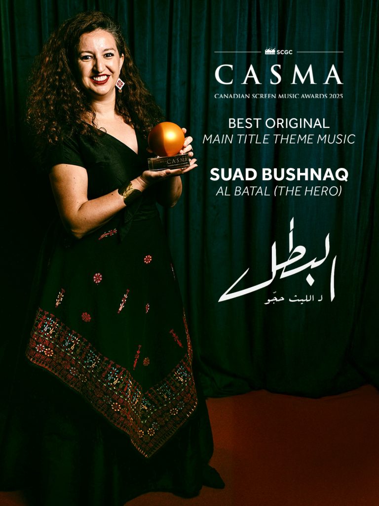 فازت المؤلفة الموسيقية سعاد بشناق بجائزة الشاشة الكندية لأفضل شارة رئيسية أصلية لمسلسل ناطق بلغة أجنبية عن مسلسل البطل للمخرج الليث حجو، لتكون السنة الثانية على التوالي التي تفوز فيها بهذه الجائزة بعد فوزها العام الماضي عن المسلسل الوثائقي Secret World of Sound من إخراج ديفيد أتينبورو، لتحقق رقم قياسي لترشحها للجائزة بمجموع 5 ترشيحات منذ نشأة الجائزة.