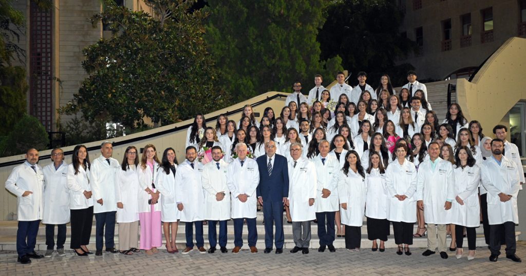 وتحدث الوكيل الأكاديمي الدكتور جورج متوجهاً بالتهنئة الى الطلاب على إنتقالهم من مرحلة الدراسات الى عالم الاحتراف في الصيدلة. واكد إلتزام كلية الصيدلة في الجامعة معايير التمايز وزرع روحية القيادة والتضامن والخدمة للاخر وللمجتمع. وتوجه بالشكر الى عميد الكلية والاساتذة والموظفين على جهودهم اللامتناهية لتمكين الطلاب وتزويدهم بالمعرفة والمهارات لتحقيق النجاح في مهنتهم. كذلك خص الطلاب بالتهنئة على ما انجزوه وقال: “أمامكم عالم زاخر بفرص التعلم والتجارب التي ستمكنكم من صقل خبرتكم المهنية وشخصيتكم، اغتنموها بعزم. لأنكم اصبحتم جزءاً من من مجتمع الرعاية الصحية، ليس فقط كمقدمي رعاية، بل كمساهمين في العلم والممارسة السريرية والنهوض بصحة الإنسان. هذه مسؤوليةٌ جسيمة، فلا تستهينوا بها”. وخلص الى ان الرداء الابيض رمز للواجب والشرف يؤكد خلاله الصيادلة الجدد التزامهم اعلى المعايير الاخلاقية لهذه المهنة النبيلة.