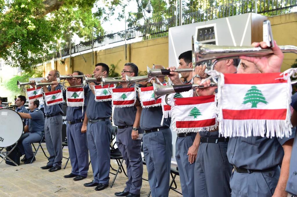 بداية مع النشيدين الوطني والفرنسي، أدتهما جوقة الجامعة الأنطونية بقيادة الأب توفيق معتوق، وعزفتهما فرقة موسيقى قوى الأمن الداخلي، ثم ألقى السفير الفرنسي.