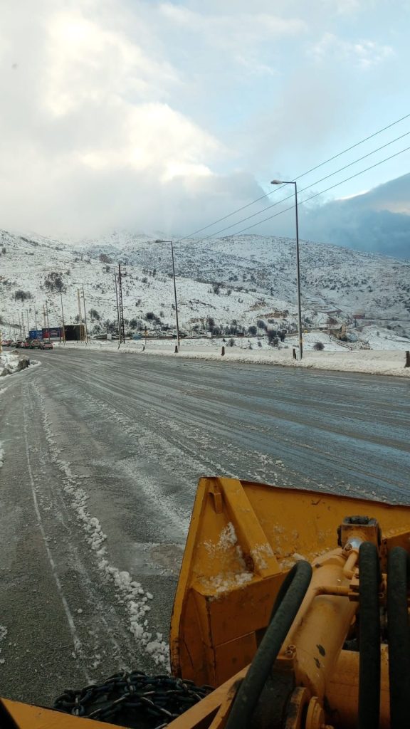 تواصل وزارة الأشغال العامة والنقل في لبنان ، عبر مراكز جرف الثلوج التابعة لها، جهودها الميدانية على مدار الساعة لمواجهة تداعيات العاصفة الثلجية وضمان سلامة المواطنين وحركة المرور في المناطق الجبلية.