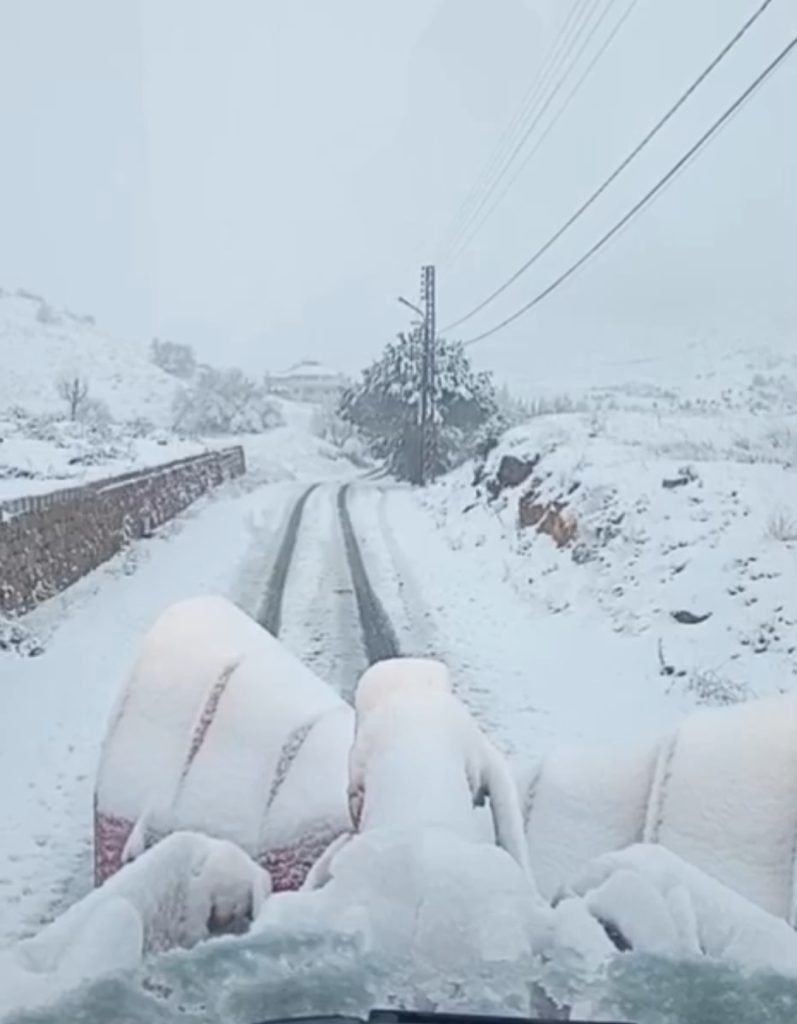- تتساقط الثلوج على ارتفاع ١٣٠٠ متر وتلامس الـ ١٠٠٠ متر ليلاً شمال البلاد.
