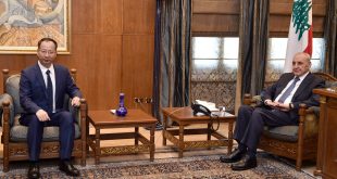 إستقبل دولة رئيس مجلس النواب الاستاذ نبيه بري في مقر الرئاسة الثانية في عين التينة السفير الصيني الجديد تشن تشواندونغ في زيارة بروتوكولية بمناسبة تسلمه مهامه الدبلوماسية كسفير لبلاده لدى لبنان ، الزيارة كانت أيضاً مناسبة جرى خلالها عرض للاوضاع العامة في لبنان والمنطقة وبحث للعلاقات الثنائية بين البلدين وسبل …