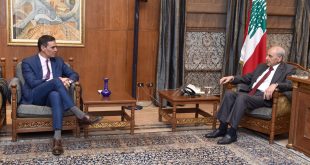 استقبل رئيس مجلس النواب الاستاذ نبيه بري مساء اليوم في مقر الرئاسة الثانية في عين التينة رئيس الحكومة الإسبانية رئيس الحكومة الإسبانية بيدرو سانشيز ، ووزيرة الدفاع الإسبانية مارغريتا روبلز بحضور السفير الإسباني في لبنان خيسوس سانتوس إغوادو والوفد المرافق ، حيث جرى عرض للاوضاع العامة في لبنان والمنطقة والعلاقات …