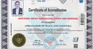 تم تعيين المؤلف الغنائي اللبناني طوني أبي كرم سفيراً للسلام والنوايا الحسنة للمركز العربي الأوروبي لعام 2020 من قبل الامانة العامة للمركز العربي الأوروبي لحقوق الانسان والقانون الدولي مقرها في اوسلو – مملكة النروج التي أصدرت تعميماً بذلك.وجاء الامر تقديراً لدور طوني في دعم ثقافة السلام والتعايش الاجتماعي ونبذ العنف …