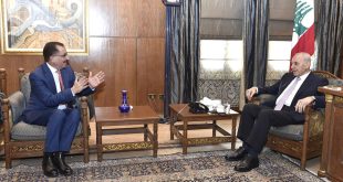استقبل دولة رئيس مجلس النواب الاستاذ نبيه بري في مقر الرئاسة الثانية في عين التينة سفير أرمينيا سارمن باغداساريان في زيارة بروتوكولية بمناسبة توليه مهامه الجديدة كسفير لبلاده لدى لبنان ، الزيارة كانت مناسبة ايضاً جرى خلالها عرض للاوضاع العامة في لبنان والمنطقة والعلاقات الثنائية بين البلدين . كما استقبل …