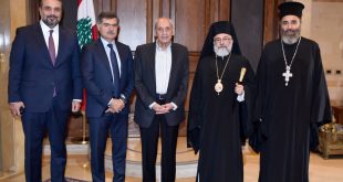 استقبل رئيس مجلس النواب الأستاذ نبيه بري في مقر الرئاسة الثانية في عين التينة النائب أديب عبد المسيح حيث جرى عرض للاوضاع العامة والمستجدات السياسية وشؤوناً تشريعية . كما استقبل الرئيس بري منسق الحكومة لدى قوات الطوارئ الدولية اليونيفل العميد الركن منير شحادة . وبعد الظهر استقبل الرئيس بري وفدا …