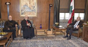 استقبل رئيس مجلس النواب الأستاذ نبيه بري في مقر الرئاسة الثانية في عين التينة راعي ابرشية صيدا ودير القمر للطائفة المارونية المطران مارون العمار ورئيس المركز الكاثوليكي للاعلام الأب عبدو أبو كسم . رئيس المجلس أستقبل أيضاً النائب ميشال المر ورئيسة اتحاد بلديات المتن الشمالي ميرنا المر حيث جرى عرض …