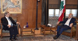 استقبل رئيس مجلس النواب الاستاذ نبيه بري في مقر الرئاسة الثانية في عين التينة وزير خارجية الجمهورية الاسلامية الايرانية حسين أمير عبد اللهيان والوفد المرافق بحضور السفير الإيراني لدى لبنان مجتبى أماني اللقاء الذي استمر زهاء الساعة جرى خلاله عرض للأوضاع العامة في لبنان والمنطقة والعلاقات الثنائية بين البلدين غادر …