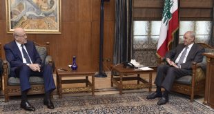 الرئيس ميقاتي : الأوضاع تقتضي ورشة طوارئ سريعة لإنقاذ البلد لا نستطيع أن نبقى على ما هي عليه الاوضاع راهناً ، ولا تستطيع الحكومة أن تقوم بدورها مع مجلس نيابي معطّل ومع عدم إنتخاب رئيس للجمهورية . استقبل رئيس مجلس النواب نبيه بري في مقر الرئاسة الثانية في عين التينة …