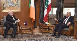 استقبل رئيس مجلس النواب نبيه بري في مقر الرئاسة الثانية في عين التينة نظيره الايرلندي شون أو فرغيل والوفد المرافق حيث تناول اللقاء الأوضاع العامة في لبنان والمنطقة وسبل التعاون التشريعي بين برلماني البلدين ، الزيارة كانت مناسبة إستهلها الرئيس نبيه بري بتوجيه التهنئة للشعب الإيرلندي ولضباط وافراد الكتيبة الايرلندية …