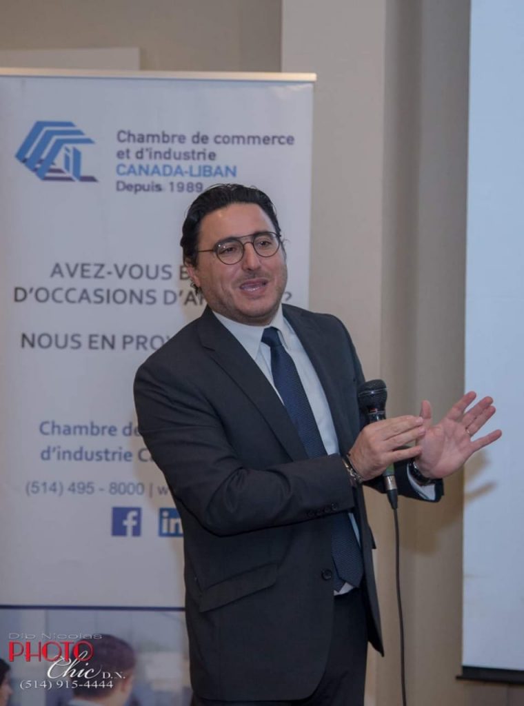 - فألقى محاضرة مثمرة مع غرفة التجارة اللبنانية-الكندية برئاسة السيد شارل أبو خالد، في حضور عدد كبير من رجال الأعمال اللبنانيين – الكنديين، والجالية اللبنانية المقيمة في مونتريال، بعنوان: «لبنان 2019 – 2020، أين نحن وإلى أين ذاهبون؟».