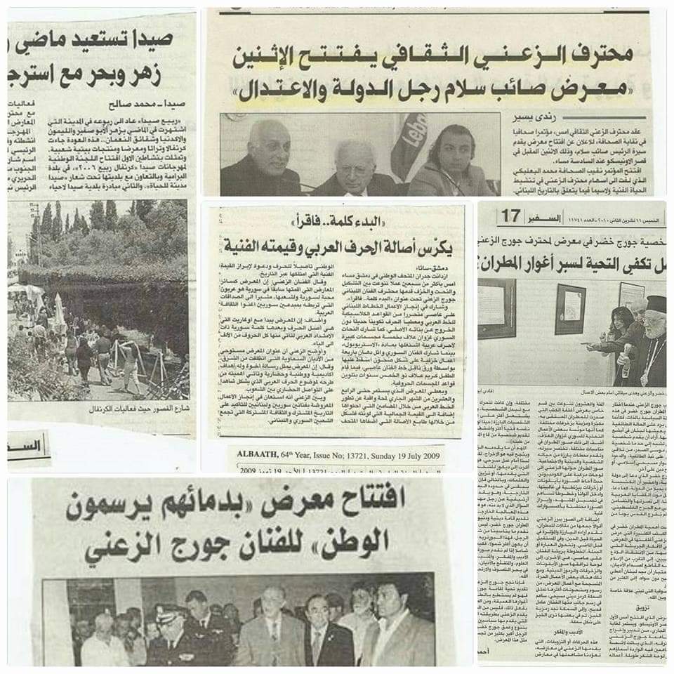 وحين أطلق الفنان جورج الزعني معرضه الذي أعده خصيصا لتحية شهداء الجيش اللبناني تحت عنوان “بدمائهم يرسمون مساحة الوطن”، وحينها لفت الفنان الزعني إلى أن “أسمى الكتابات بعد الكتب السماوية هو شعار الجيش، جيش لبنان، الشرف والتضحية والوفاء، موضحاً “ان شباب جيش لبنان هم ضحية الارهاب، والارهاب ليس من مفرداتنا، انه يناقض كل تعاليم الاديان السماوية التي دعت وتدعو الى التسامح والمحبة”. واشار الى ان “المطلوب اليوم يقظة وطنية شاملة يكون لبنان وحده هو المنتصر، واليقظة تتطلب علما، والعلم اساس الثروة وأساس القوة”.