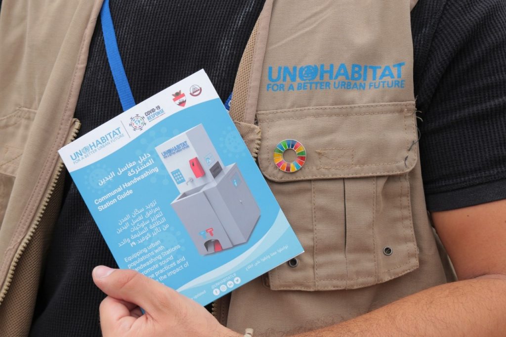 بيروت، في 14 تموز 2020. قام برنامج الأمم المتحدة للمستوطنات البشرية في لبنان (UN-Habitat Lebanon) بتصميم وتصنيع وتركيب مرافق مشتركة لغسل اليدين هي الأولى من نوعها في لبنان. يستفيد من هذه المرافق التي تم تركيبها في أربعة أحياء مهمّشة: إثنان في بيروت (صبرا والداعوق-غواش) وبرج حمود (مرعش والنبعة)، اللبنانيون واللاجئون والمهجرون القاطنون في هذه الأحياء. ستوفر مرافق غسل اليدين خدمات المياه والنظافة الصحية لحوالي 30.000 من السكان المحليين واللاجئين وذلك بهدف التخفيف من تأثير فيروس كورونا ومخاطر صحية مماثلة أخرى.