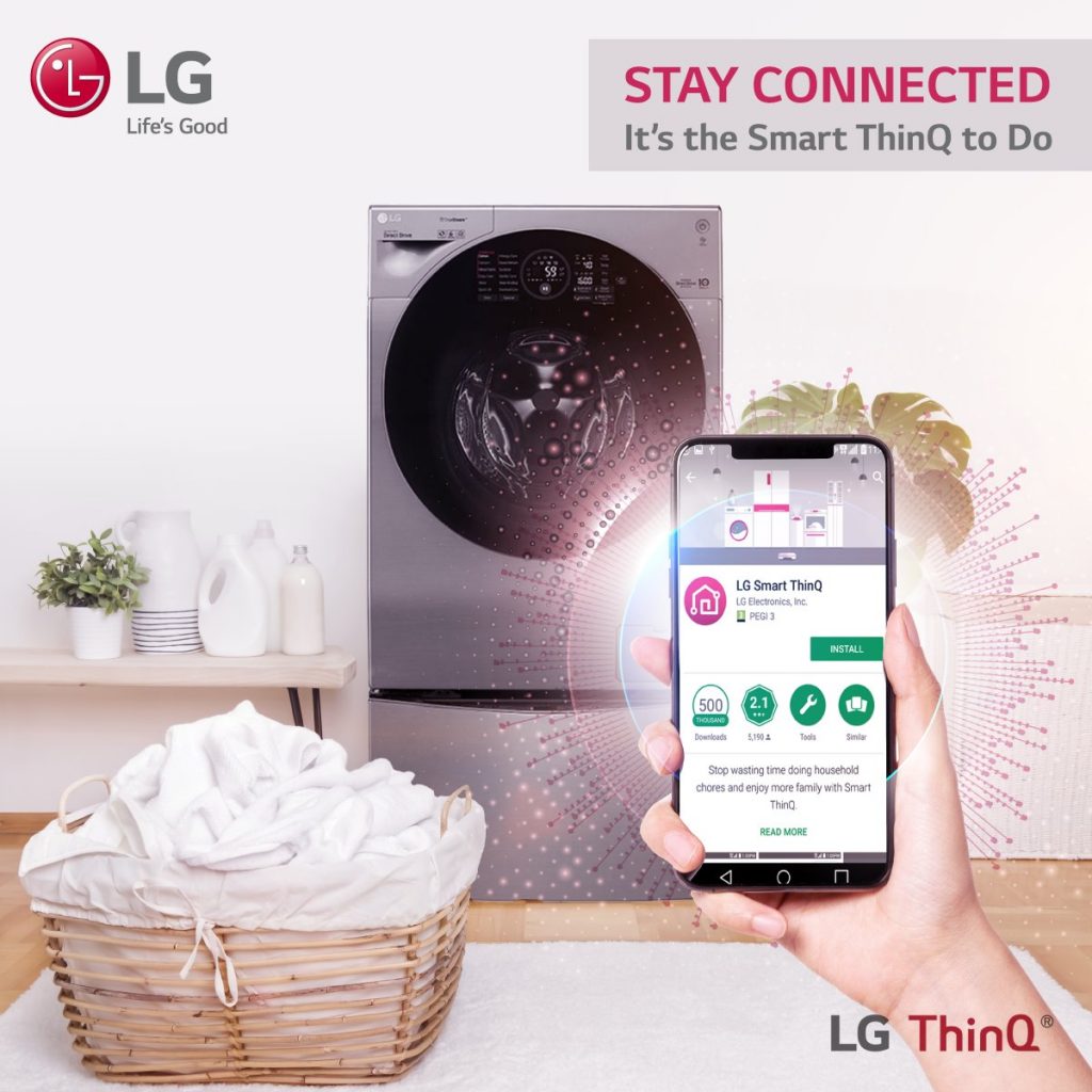 تم إطلاق تطبيق LG ThinQ للهاتف المحمول في تشرين الثاني 2015 وهو متوفر حالياً في أكثر من 150 دولة، مما يجعل حياتك أسهل، ويقلل من مخاوفك مع زيادة السهولة والمتعة إلى أقصى حد! في الواقع، التطبيق يربط كافة أجهزتك، مع التأكد من أن كل شيء داخل منزلك يعمل بسلاسة، بكبسة زر واحدة فقط! نعم، ستكون قادراً على تشغيل أو إيقاف التشغيل أو بدء أو إيقاف أو ضبط الإعدادات على أجهزة ThinQ الخاصة بك عن بُعد من دون النهوض عن الأريكة أثناء مشاهدة الحلقة الأخيرة التي كنت تنتظرها بفارغ الصبر طوال اليوم!