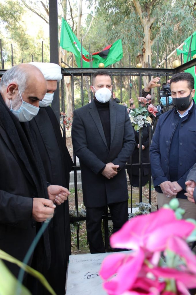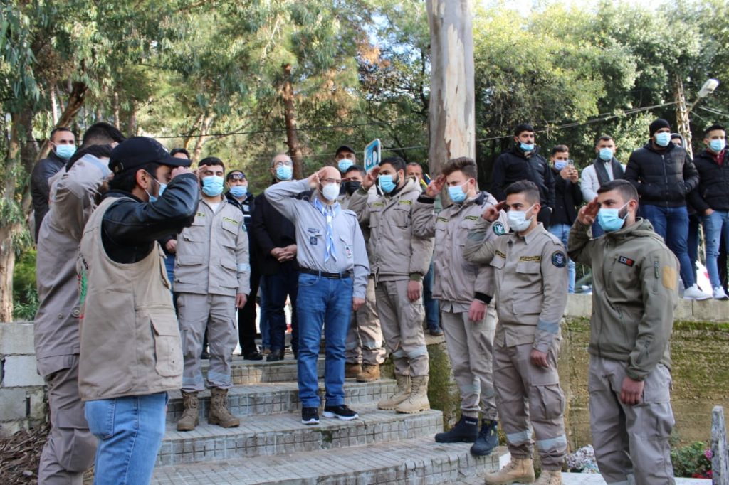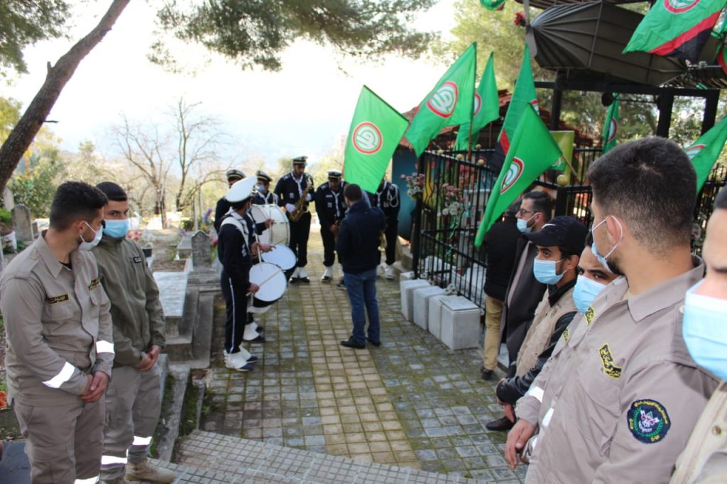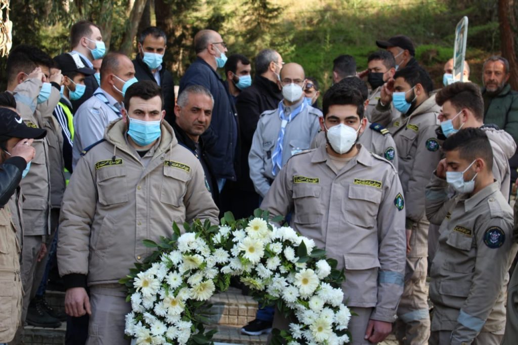 وعلى لحن النشيدين الوطني اللبناني وحركة أمل اللذين عزفتهما الفرقة الموسيقة التابعة لجمعية كشافة الرسالة الاسلامية، تم وضع اكليل من الزهر باسم قيادة حركة أمل وجمعية كشافة الرسالة الإسلامية وقراءة الفاتحة.
