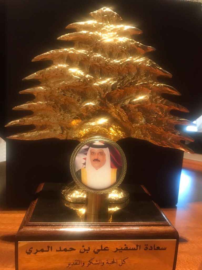كــــــرم مـــمـــثـــلـــو وســـــائـــــل الاعـــــــــلام الـــقـــطـــريـــة المعتمدون فـي لبنان سـعـادة السيد علي بــــن حـــمـــد المـــــــري ســـفـــيـــر دولـــــــة قـــطـــر لـــدى الـجـمـهـوريـة الـلـبـنـانـيـة ، وذلــــك بمناسبة انــــتــــهــــاء فــــتــــرة عـــمـــلـــه، وقـــــدمـــــوا لـــــه درعـــــا تذكارية تقديريا للدور الذي قام به خلال توليه منصبه.