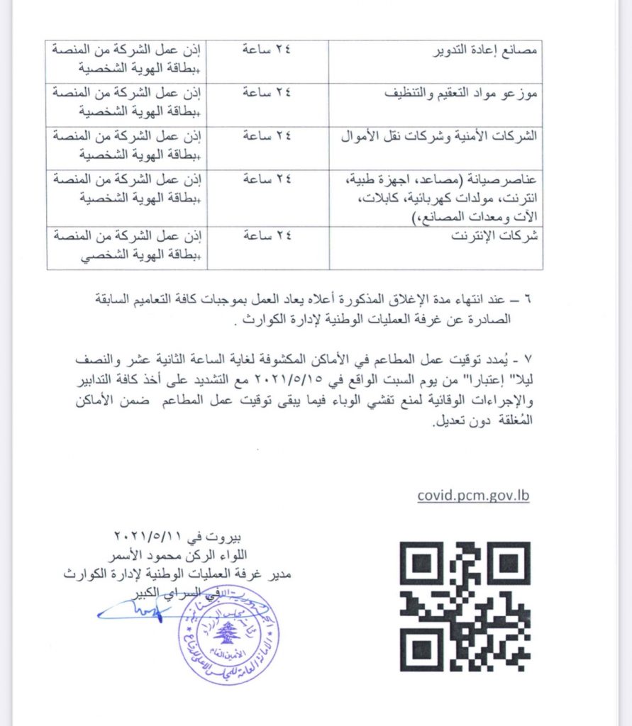 أعلنت غرفة العمليات الوطنية لادارة الكوارث في بيان، “تنفيذ الاغلاق خلال فترة عيد الفطر لمدة يومين اعتبارا من أول أيام العيد، كما أصدرت لائحة مفصلة بالقطاعات المستثناة من الاغلاق”.