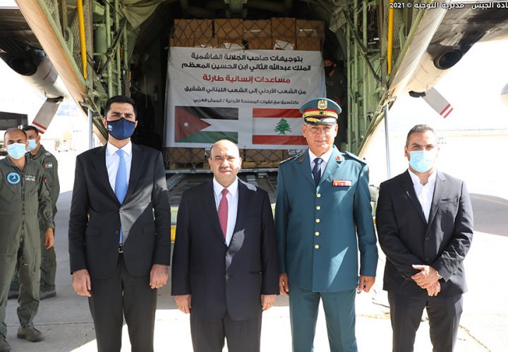 “بحضور السفير الأردني في لبنان السيد وليد الحديد وممثل قائد الجيش العماد جوزاف عون، تسلّم الجيش اللبناني بتاريخ 16/8/2021 عبر مطار رفيق الحريري الدولي 10 أطنان ونصف من المواد الطبية المقدّمة هبة من المملكة الأردنية الهاشمية لصالح المؤسسة العسكرية.”