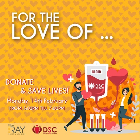يستقبل فندق The Ray Hotel الواقع في عين سعادة يوم عيد الحب على طريقته الخاصة، متخذًا الهدف الانساني والصحي عنوانًا للحب، وذلك من خلال دعوته واستقباله لمؤسسة DSC الهادفة للتبرع بالدم لاقامة حملة تبرع بالدم داخل الفندق، وذلك يوم ١٤ من شهر شباط/فبراير الجاري من الساعة الثالثة من بعد الظهر حتّى السابعة مساءً حيث يدعو كل المهتمين بهذا الهدف الصحي والانساني من نزلاء وزوّار لملاقاتهم في هذا المكان والزمان ودعمهم للوصول الى هدفهم.