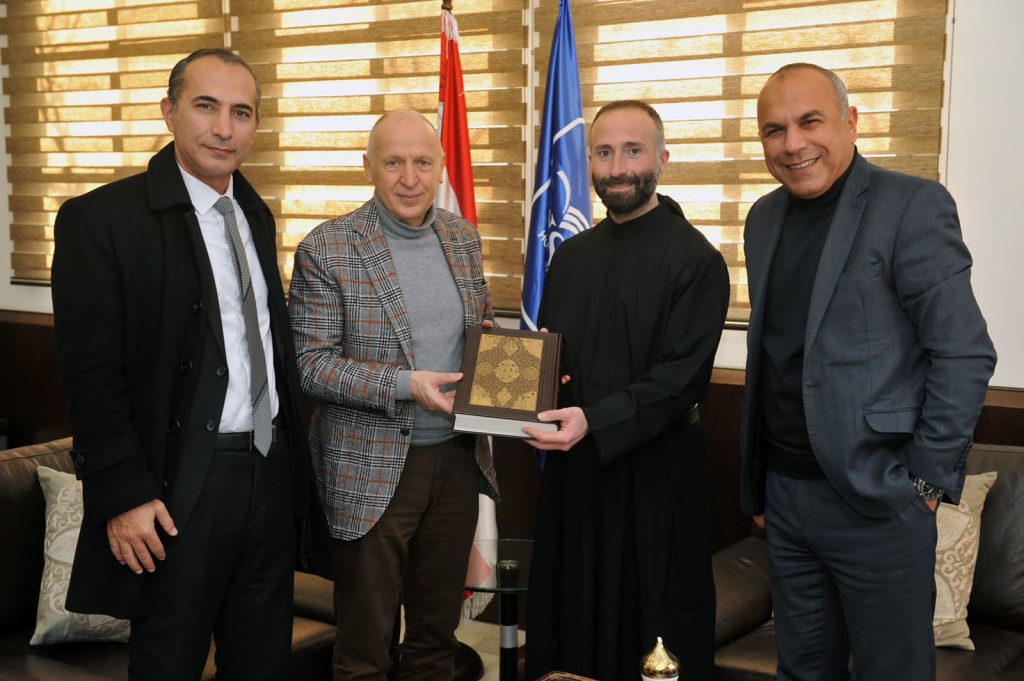ثم توجّه السفير الأوكراني والوفد المرافق إلى المكتبة العامّة بهدف تقديم كتابه “the gospel of Mazepa” الذي طُبع في العام 1708 في حلب. والتقى مديرها الأب جوزيف مكرزل، حيث جال في أقسام المكتبة، وتعرّف على كنوزها الخفيّة وتصفّح كتاب مزامير الملك والنبي داود “The Book of the Psalms of David, King and Prophet”، وهو أول كتاب طُبع في القسم الشرقي من السلطنة العثمانية، وقد جرت طباعته في دير مار أنطونيوس قزحيا في العام 1610.