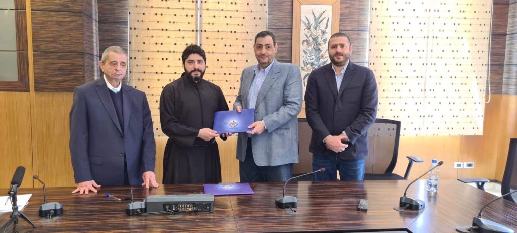 وبعدها جرى التوقيع على بروتوكول التعاون بين الرئيس حلبي والأب الرئيس ايلي سعاده والتقطت الصور التذكارية وانتقل بعدها الحاضرون الى مكتب سعادة حيث عُقدت خلوة لرسم معالم الحاضر والمستقبل.