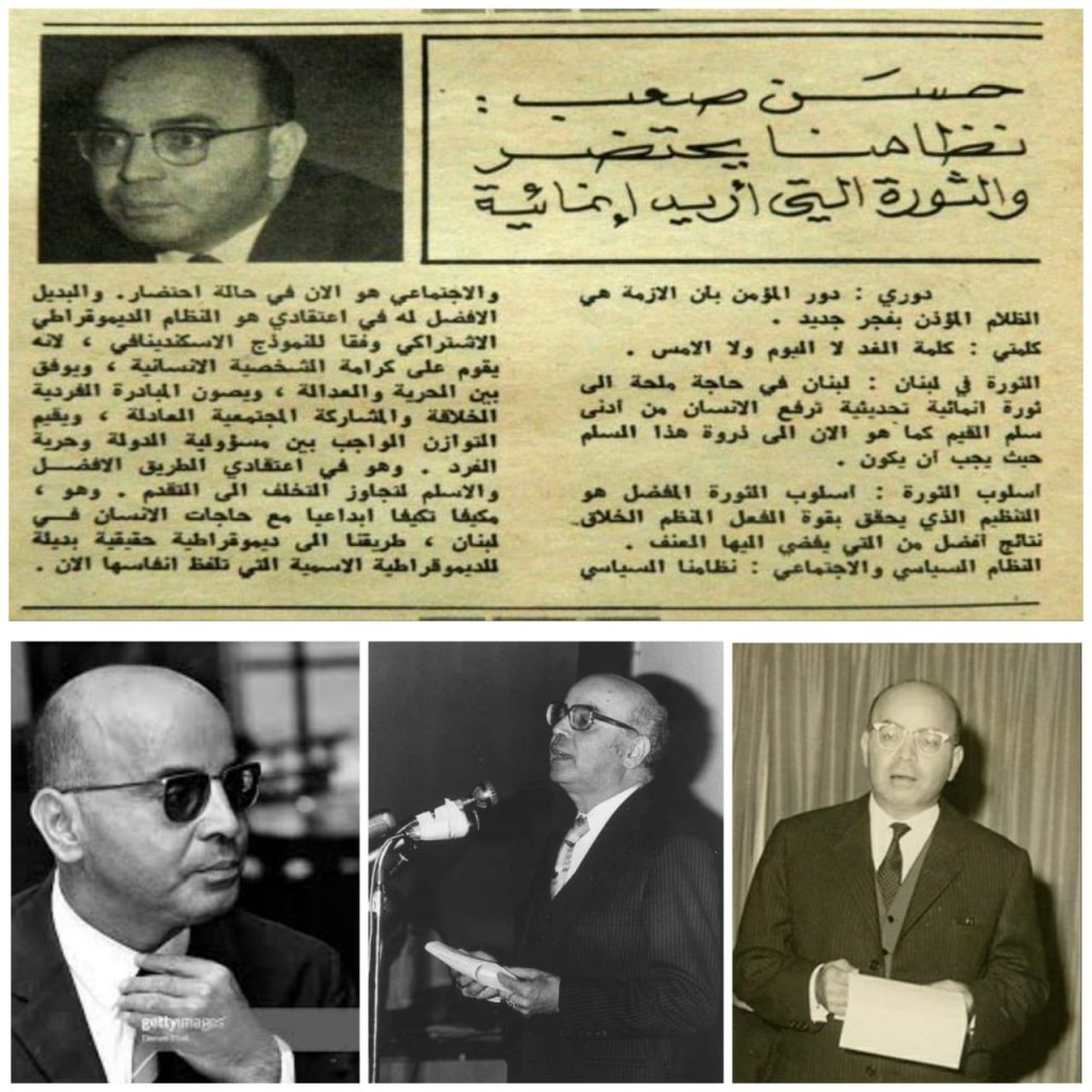 وهذا حقاً ما ميز فكر معلمي الراحل د.حسن صعب الخلاق . ان الناظر بعمق الى عطاءاته الفكرية يستغرب تعطشه وحواراته وكتاباته وأفكاره المتسابقة المتطلعة ابداً نحو المستقبل. فمفهوم الإنماء الذي بدأ بنشره في لبنان والمجتمع العربي كان سباق لعصره. ومن يتعاطى اليوم بمواضيع النمو، والإنماء، والتنمية المستدامة، الاستراتيجية التنموية يدرك ذلك. انها مواضيع نطرقها اليوم، وكان المرحوم المفكر د.حسن صعب قد سبقنا إليها بعقود، ونبهنا الى ضرورة استيعابها والاحاطة بها، لانها ستكون معيار تقدم المجتمعات في العالم ، وواقعاً هذا ما هو قائم الآن.