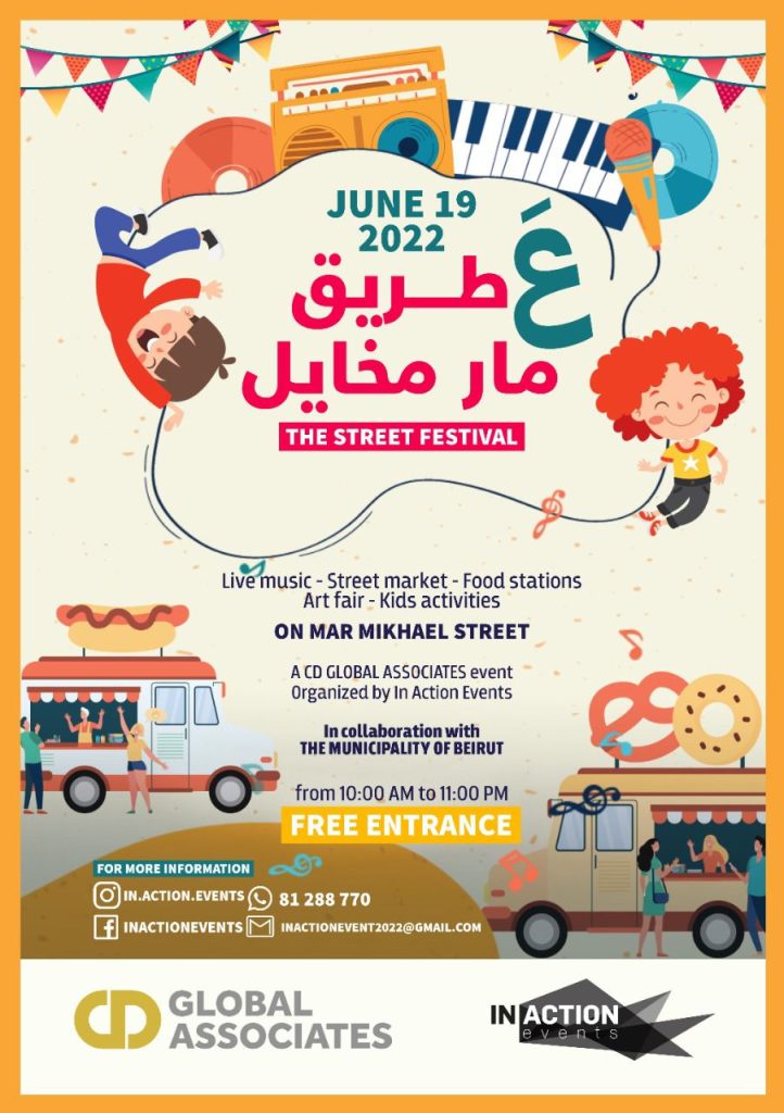 تقام فعالية “ع طريق مار مخايل” يوم الأحد 19 حزيران 2022 من الساعة 10 صباحًا حتى 11 مساءً على شارع مار مخايل الرئيسي من “كهرباء لبنان” حتى “مكتبة الكتاب المقدس”.
