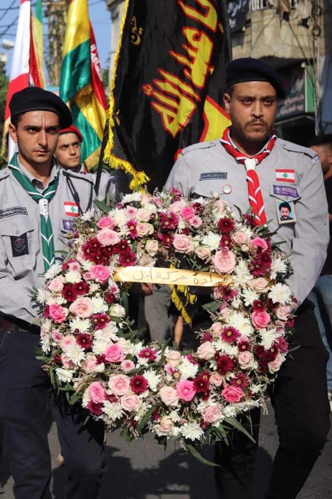 موكب التشييع تقدمه مسيرة كشفيّة وحملة الاكاليل وصولا الى مدافن البلدة حيث ام الصلاة على الجثمان العلامة الشيخ حسن عبدالله ثم وري الثرى بعدها تقبلت عائلة الراحلة وقيادتي الحركة وكشافة الرسالة التعازي من المشاركين في التشييع .
