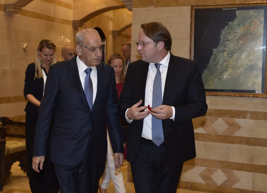 على صعيد آخر استقبل رئيس مجلس النواب الاستاذ نبيه بري في مقر الرئاسة الثانية في عين التينة المفوض الأوروبي المكلف بسياسة الجوار والتوسع أوليفر فارهيلي حيث جرى عرض للاوضاع العامة في لبنان والمنطقة .
