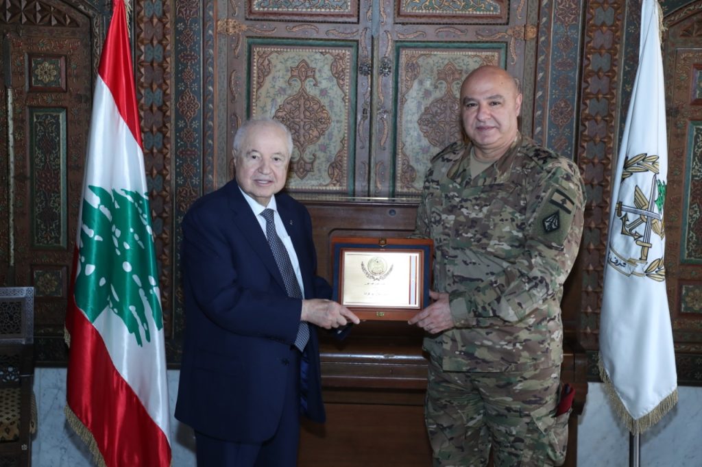 سلم قائد الجيش جوزاف عون سعادة الدكتور طلال أبوغزاله درعا تكريميا وذلك تقديرا لتقديماته التي خص بها مؤسسات التعليم في الجيش اللبناني وذلك عبر تجهيز ثلاث محطات معرفة في كل من كلية فؤاد شهاب للقيادة والأركان والكلية الحربية ومدرسة الرتباء بهدف تعزيز التحول الرقمي في الجيش اللبناني من منطلق البحث الرقمي ،التمكين الرقمي، الابتكار الرقمي من خلال محطات المعرفة المجهزة بأجهزة كمبيوتر محمولة متصلة بمكتبة رقمية علمية ومنصة تحتوي على أكثر من ٦٠٠ مقرر تدريبي في شتى شؤون التحول الرقمي والادارة المتقدمة حيث ستقوم نقابة تكنولوجيا التربية في لبنان بتنسيق الاحتياجات من مدربين ودعم تقني لضمان الاستفادة من محطات المعرفة على أعلى المستويات الممكنة حيث يلزم .