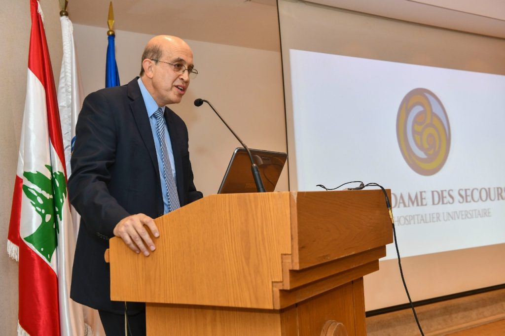 من جهته، اعتبر مدير عامّ مستشفى سيّدة المعونات الجامعيّ الأب وسام الخوري “أن هذه الواحة العلمية والطبية والتمريضية التي نلتقي في رحابها اليوم هي ولا شك واحة حياة ودفاع عن الحياة واستماتة في سبيل الحياة. هي واحة أمل للحاضر ورجاء في المستقبل، تتكاتف فيها الجهود الأكاديمية والعلمية لكلية الطب والعلوم الطبية في جامعة الروح القدس، مع الخبرات الاستشفائية والطبية لطواقم مستشفى سيدة المعونات الجامعي، في سبيل تعزيز الأمل وتخفيف الألم. هنا تنشّأ أجيال العناية الصحيّة الطالعة على أيدي معلمين بارعين وفي محيط رائد أمين، وهنا يتزاوج العلاج الطبي بالمحبة الانسانية ليفقد خزف الحياة من هشاشته ويزيد من ثباته”.
