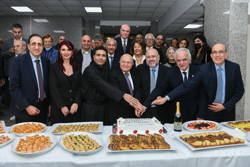وبعدما تحدث عن الأزمة وتراكم الويلات خلال السنوات العجاف الماضية ولم يسلم منها القطاع الاستشفائي، أشار إلى “أن تلك الأيام الشديدة اللؤم في سيرانها المتراكض والكثيرة العنف في انحدارها العامودي، قد جعلتنا نعتقد بغياب الكبار في الأدب والعلم والفن والسياسة والطب، وإذ بنا، وبالرغم من تعاظم التشاؤم واشتداد الانحدار، نبصر من جديد شذرات نور وبصائص أمل تعيد الثقة بقيامة المجتمع والوطن، ونساء ورجال منا ومن عائلتنا تنتزع باستحقاق مكانة لها بين رواد العالم في العلم والطب والتقدم”. وأضاف: “في هذا الوقت ننظر بفخر وإعجاب إلى خبرة الدكتور الياس الطبية والعلمية الطويلة، وإلى ما يحمل في نفسه وقلبه من قيم إنسانية ومبادئ مهنية واحترام للحياة، يبذرها في نفوس تلامذته ويجسّدها في تعاطيه اليومي مع مرضاه في العيادة والقسم وغرف العمليات، وفي بحثه الدائم والمتفان لإيجاد التشخيص الأدق والعلاج الأنجع والنتيجة الافضل. فحصول الدكتور إلياس مخول على جائزة Masters of WGO Awards عن منطقة أفريقيا والشرق الأوسط، وهي الجائزة الأعلى التي تمنحها الجمعية العالمية للجهاز الهضمي لنخب هذا الاختصاص، لهو خير دليل على أن الله قد زرع فيه وفينا بذور الألوهة والإبداع لنعاونه في صيانة الحياة وصون كرامة الإنسان”، متقدّمًا من البروفسور مخّول بكامل التهنئة القلبية على ما ناله.
